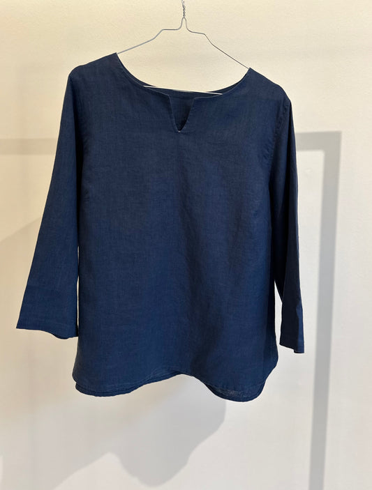 Emma Bluse, 3/4 Ærmer, Navy - Linen By Krebs