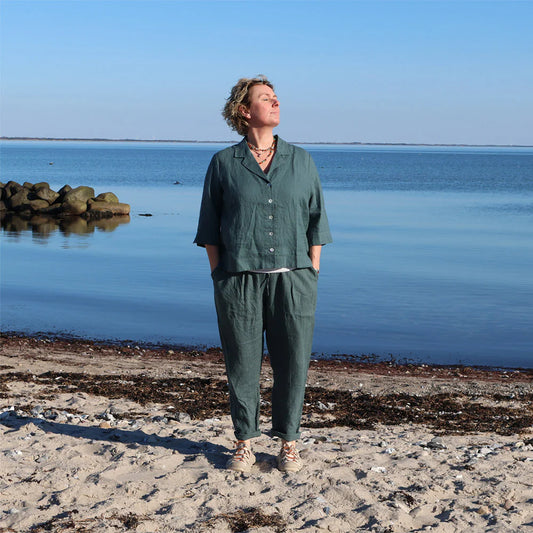Marie Bukser i kraftig hør, Balsam Grøn - Linen By Krebs