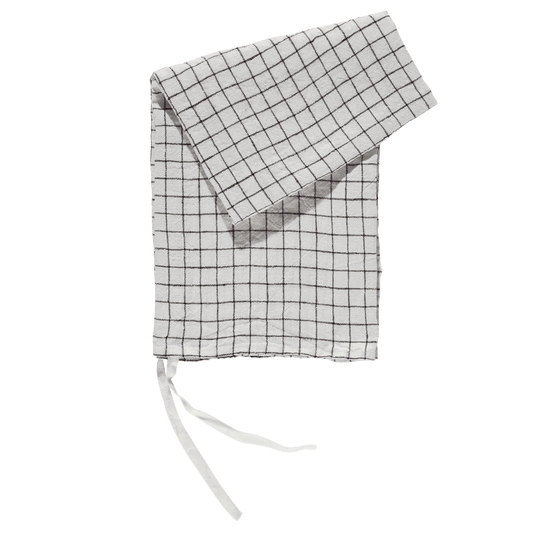Viskestykke / Mini Forklæde i vasket hør, Hvid med sorte tern - Linge Particulier